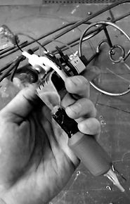 Coupled with a growing fascination with Hito Steyerl's The Wretched of the Screen (more information to this point can be found in the 'Context' section), the next two works tried to logically follow on from the previous conversation about masculinity while also bringing the notion of value to the forefront. One, a charcoal rendering of an image of young Mike Tyson screenshot from a poor quality YouTube video, tried to incorporate a reading of Hito Steyerl's thoughts on the hierarchy of image quality in the digital world. The piece was done at a much larger scale (60 x 48 in) which satisfied a personal need for physicality in the process of drawing - a need which has since found some clarity in researching Matthew Barney's Drawing Restraint series. Simultaneously I was building a few rudimentary tattoo machines, using only elements that might be available to incarcerated prisoners, as an object-driven expression of economies of value. Further, these two pieces were an important step in opening myself up to an ethos of the 'concept driving the medium' as opposed to the reverse, something I have been guilty of for much of my artistic career.